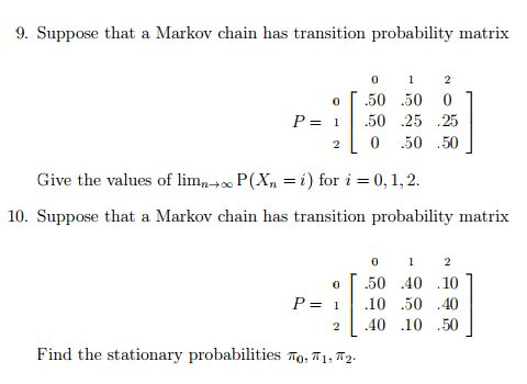 Solved 9. Suppose that. a Markov chain has transition | Chegg.com