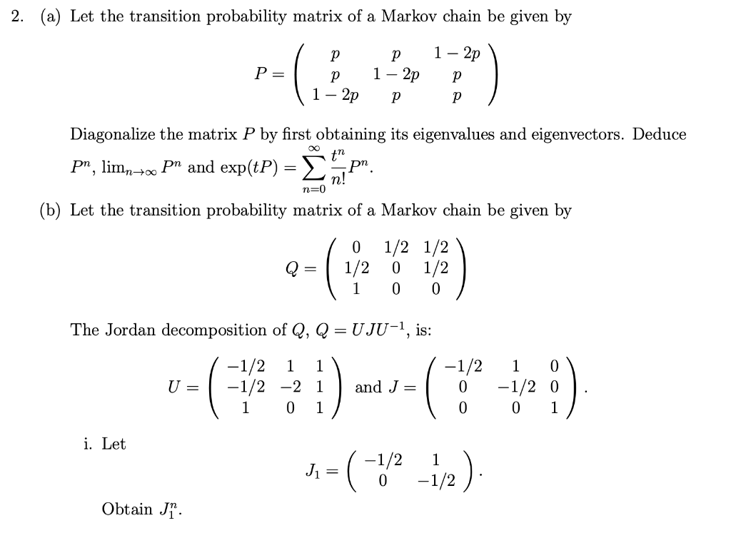 Solved 2. (a) Let the transition probability matrix of a | Chegg.com