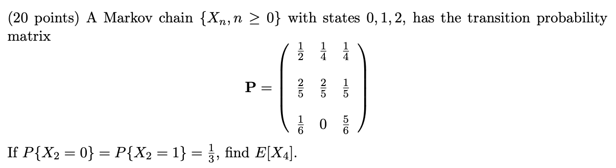 Solved (20 points) A Markov chain {Xn,n≥0} with states | Chegg.com