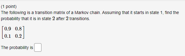 Solved (1 point) The following is a transition matrix of a | Chegg.com