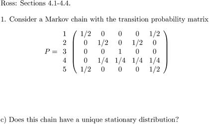 Solved Consider an irreducible 5-state Markov chain with | Chegg.com
