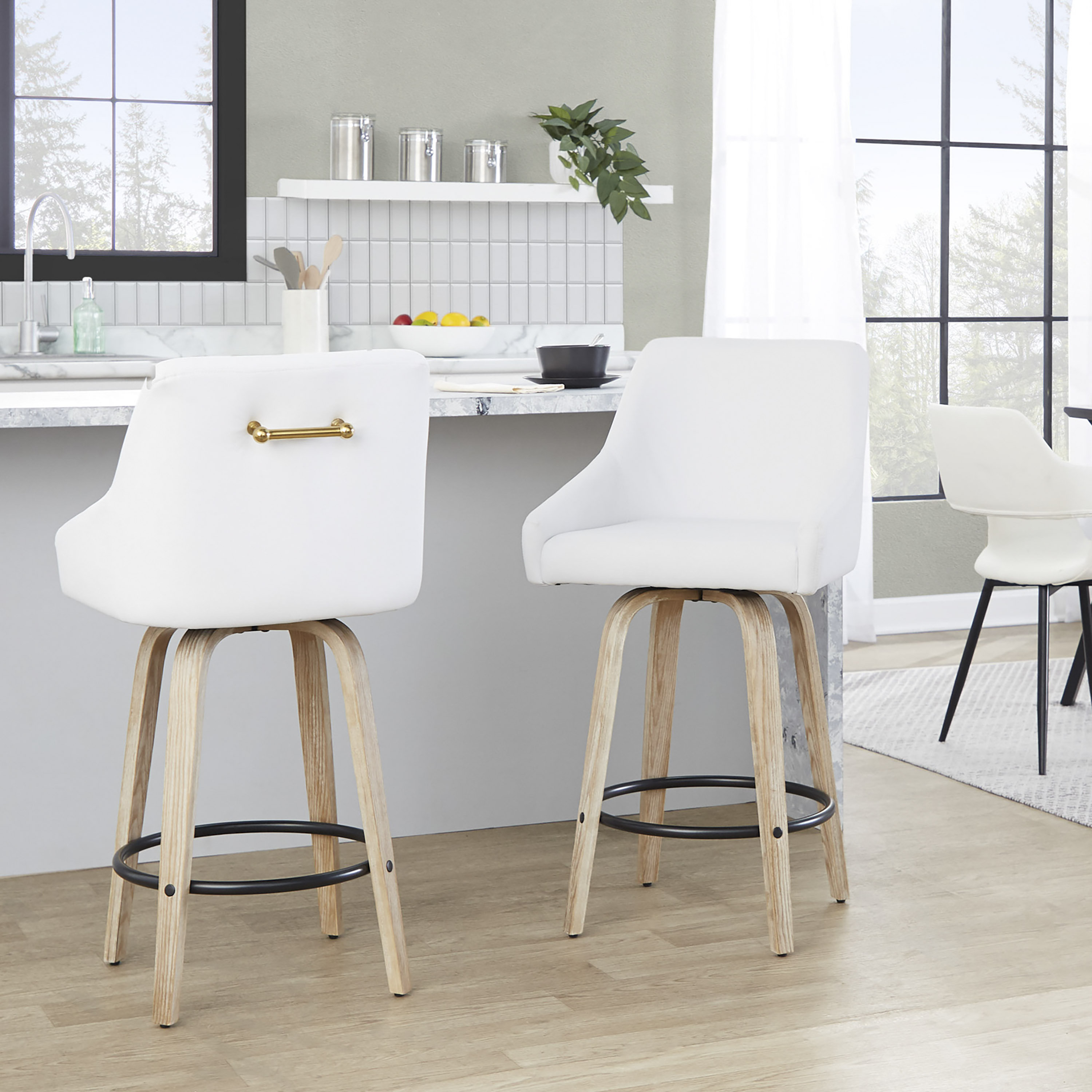 LumiSource Hannah Transitional Fixed-Height stool With Swivel In Wood ...