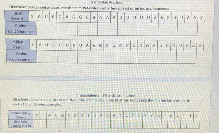 Solved Translation Practice Directions; Using a codon chart, | Chegg.com