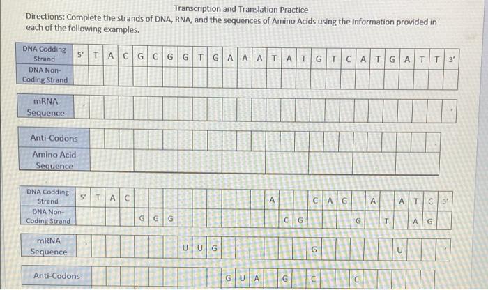 Solved Practicing DNA Transcription and Translation Codon | Chegg.com