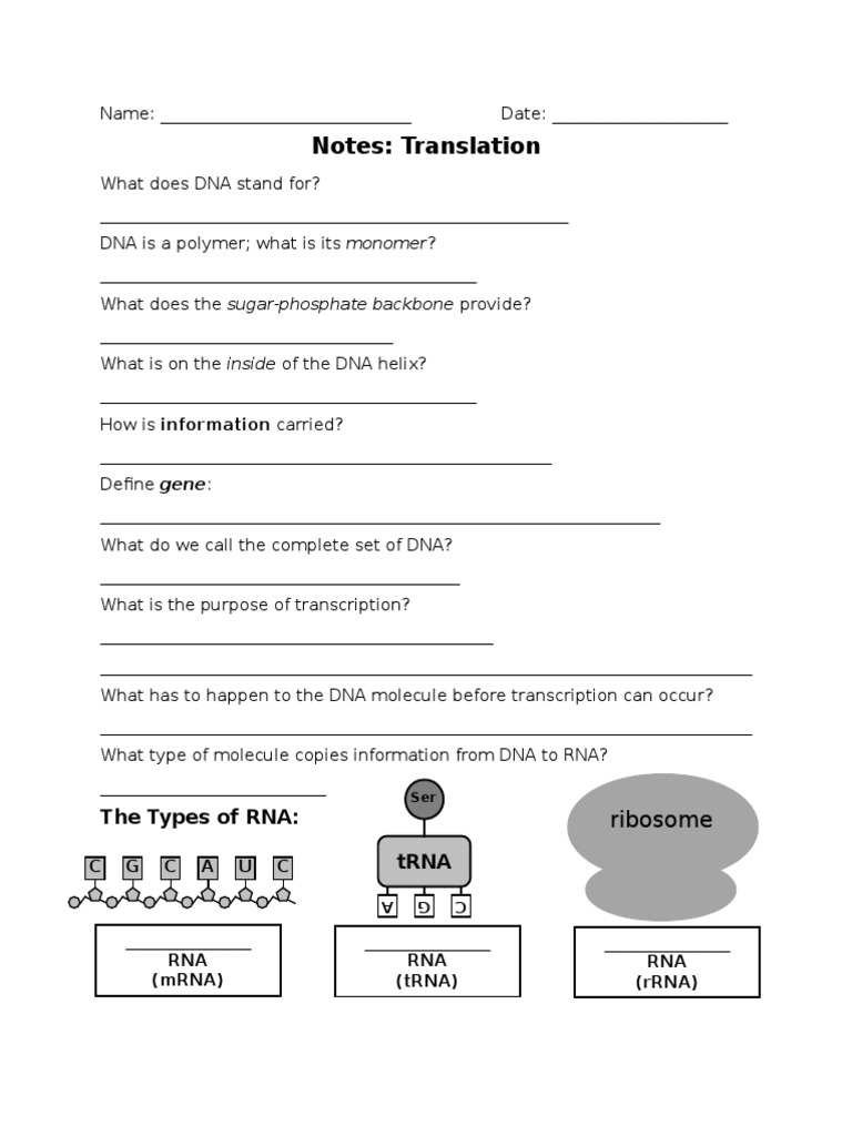 Transcription and Translation Worksheet | Study notes Genetics ...