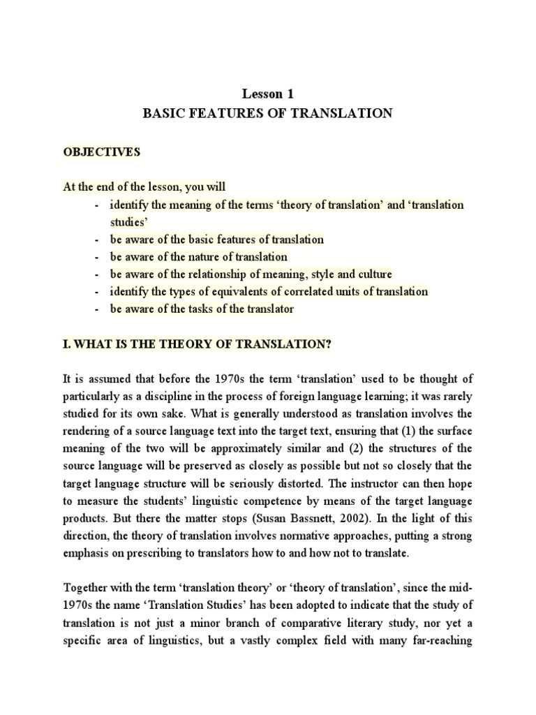 (PDF) BASIC TRANSLATION (a course of lectures on translation theory and ...