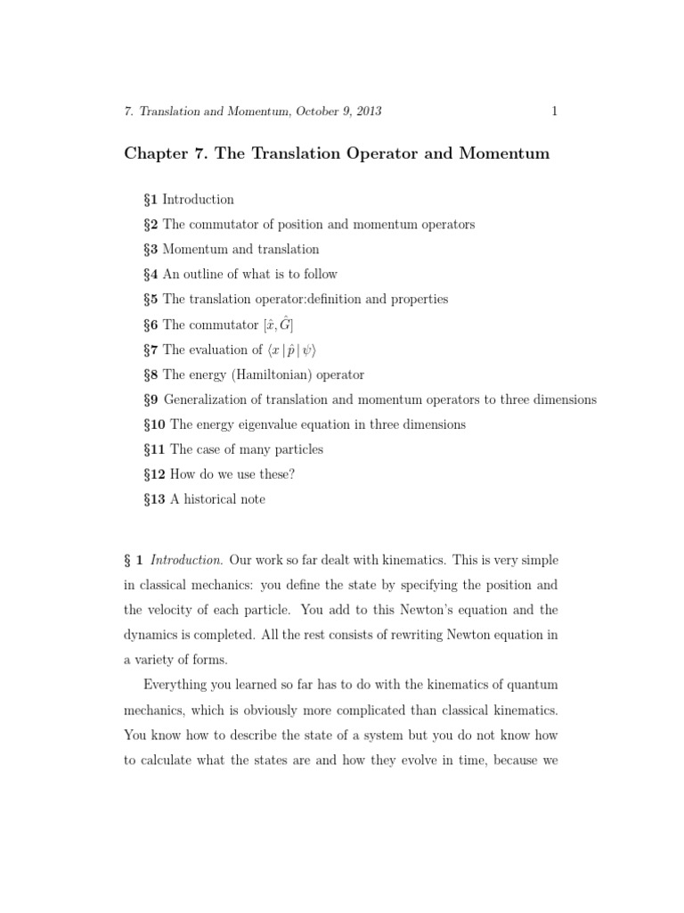 Momentum and Translation Operators in QM | PDF | Physical Sciences ...