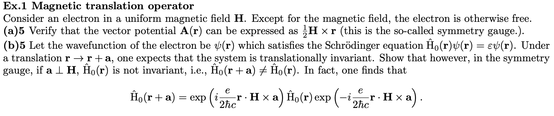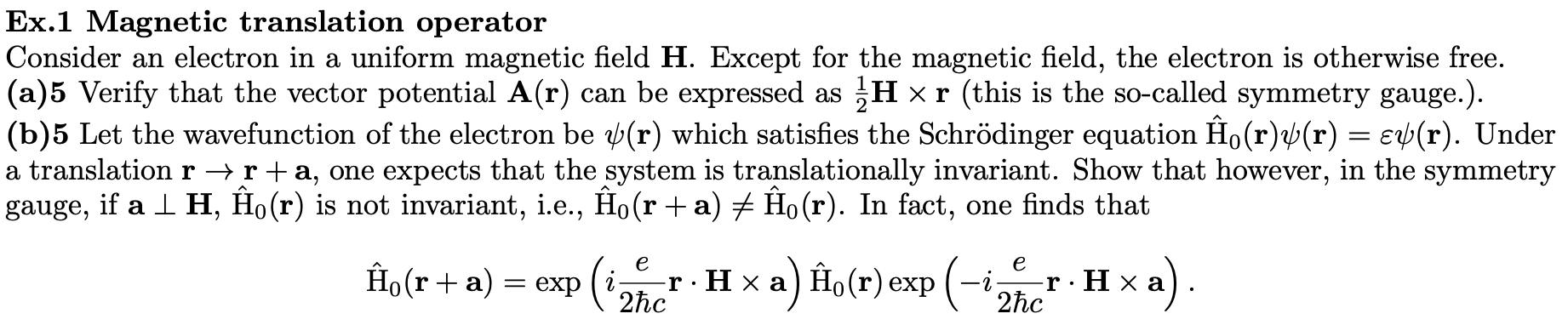 Solved = Ex.1 Magnetic translation operator Consider an | Chegg.com