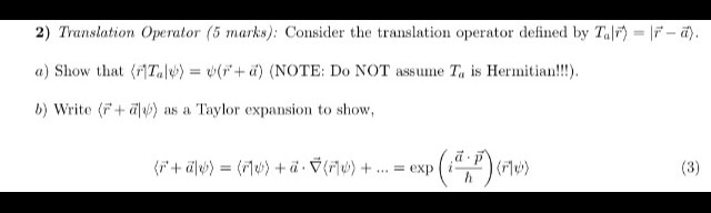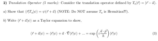 Solved The translation operator 2(a) is defined to be such | Chegg.com