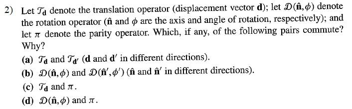SOLVED: Let 𝒯d denote the translation operator (displacement vector 𝐝 ...