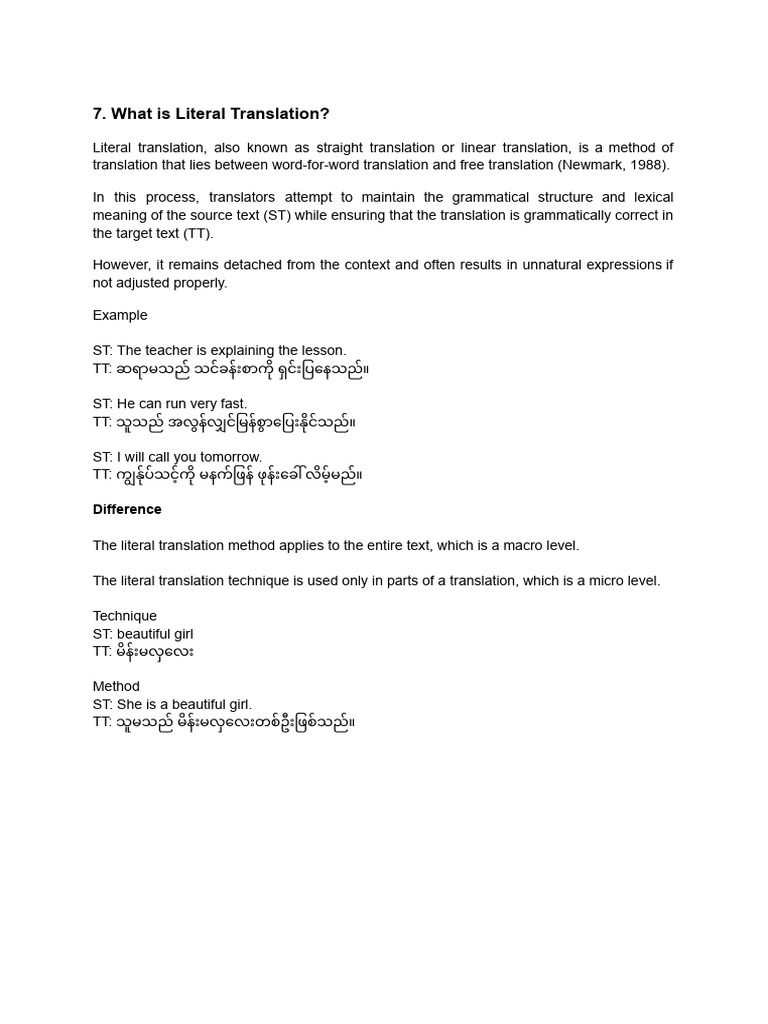 The Example of Literal Translation | Download Scientific Diagram
