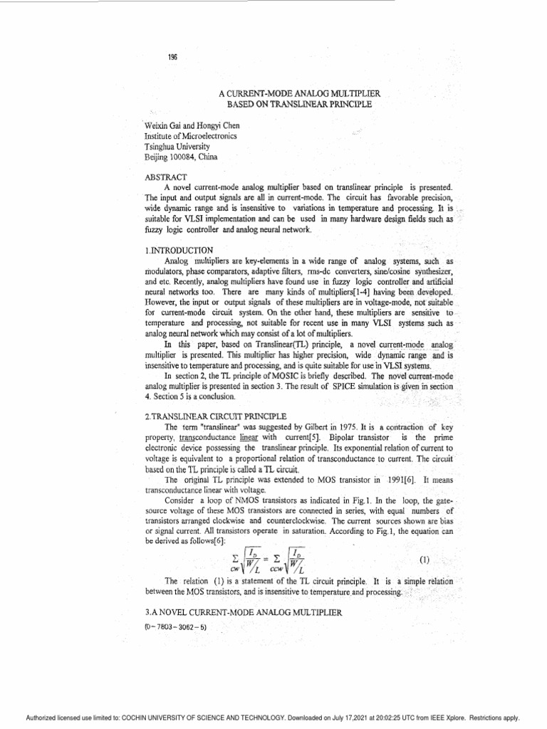 A Current-Mode Analog Multiplier Based On Translinear Principle | PDF ...