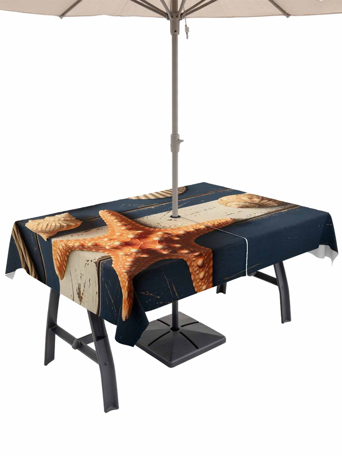 Coastal Starfish Rectangle Outdoor Tablecloth with Umbrella Hole ...