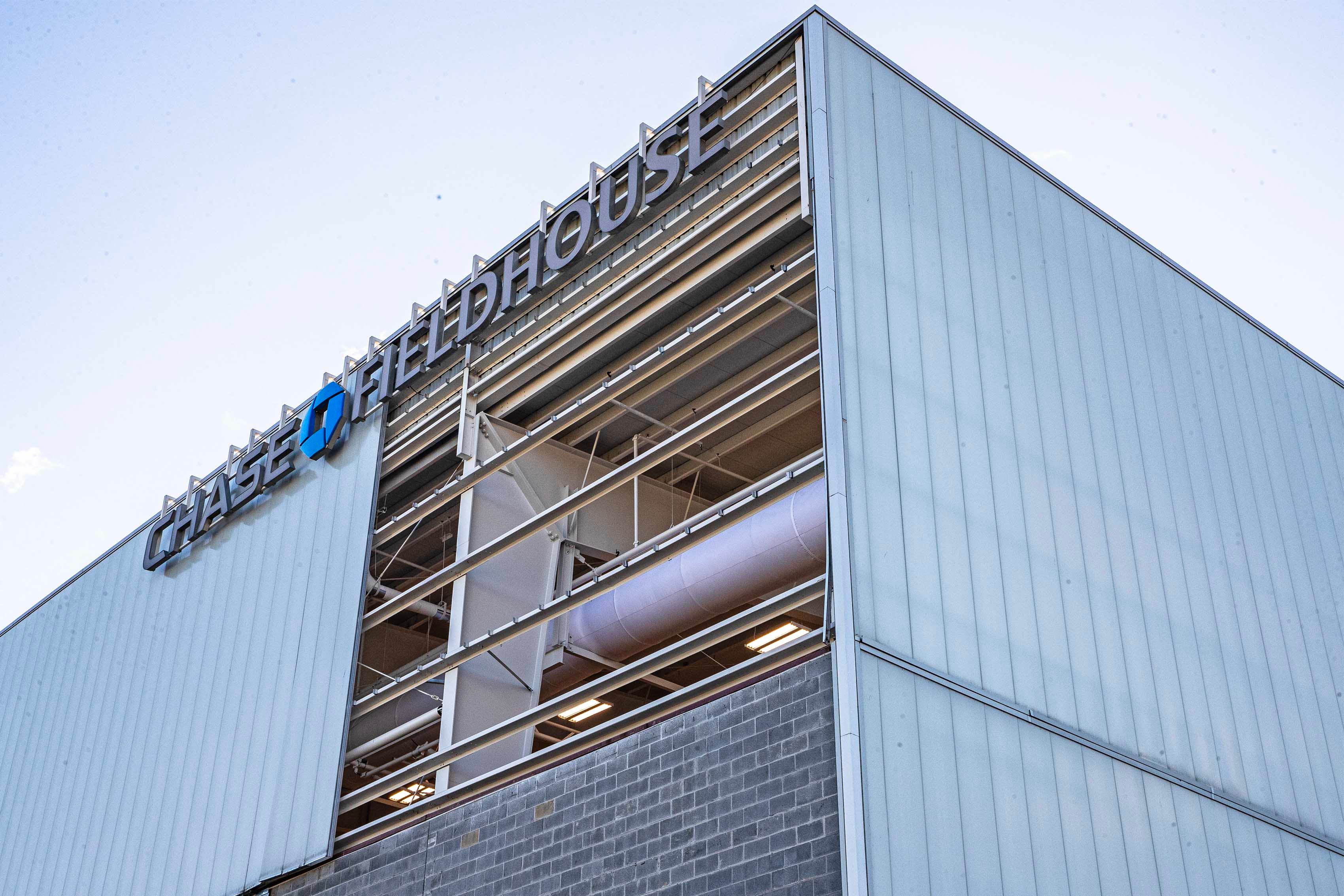 Side panels of Chase Fieldhouse arena in Wilmington blown off by 50 mph ...