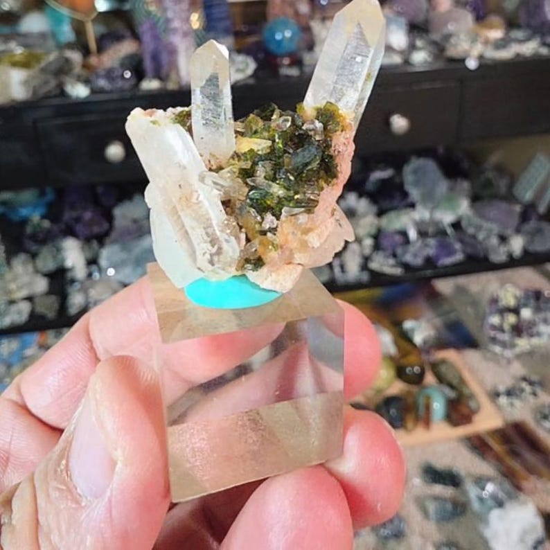Mini Quartz Crystal Cluster With Epidote | Double Point Thumbnail ...