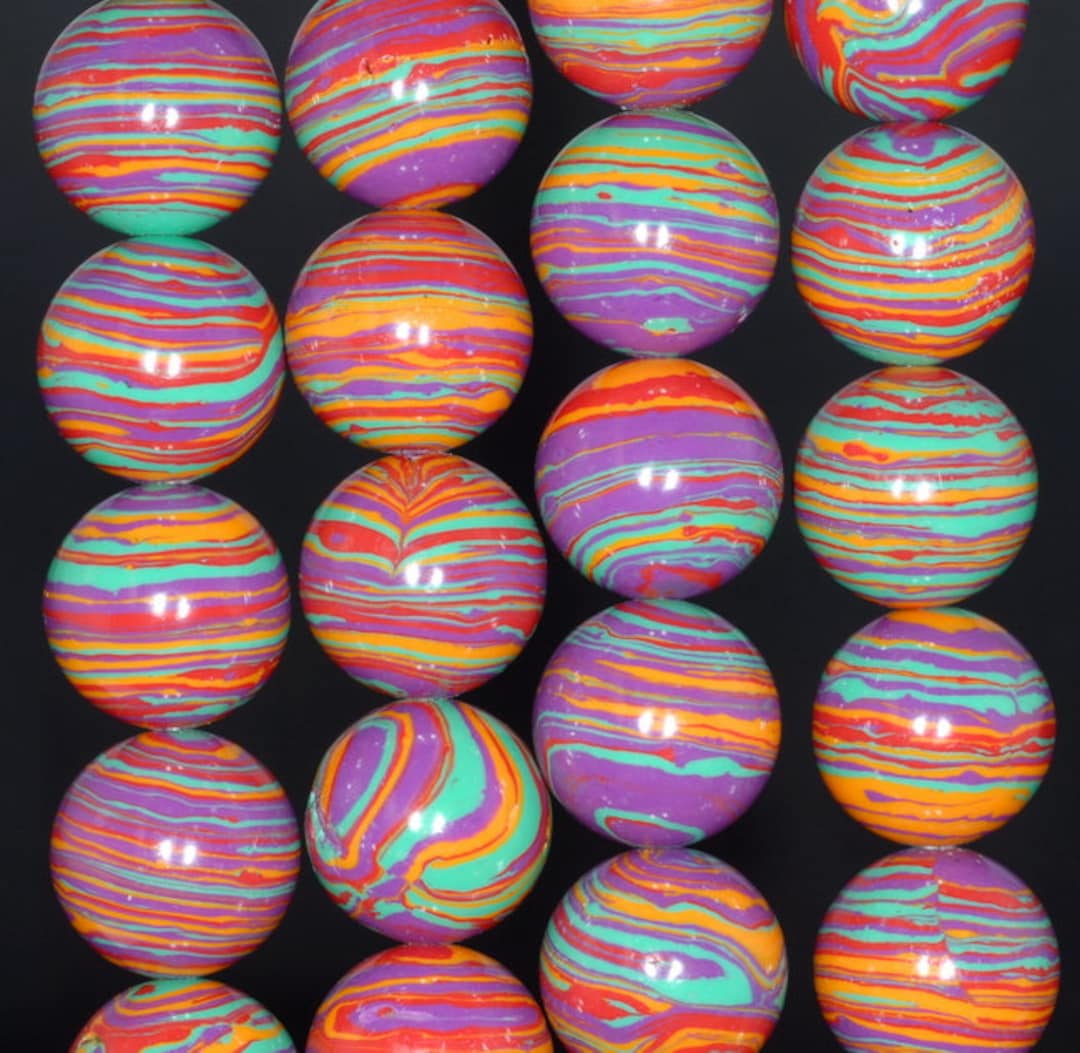 14MM Rainbow Matrix Turquoise Gemstone Round Loose Beads 15.5 - Etsy