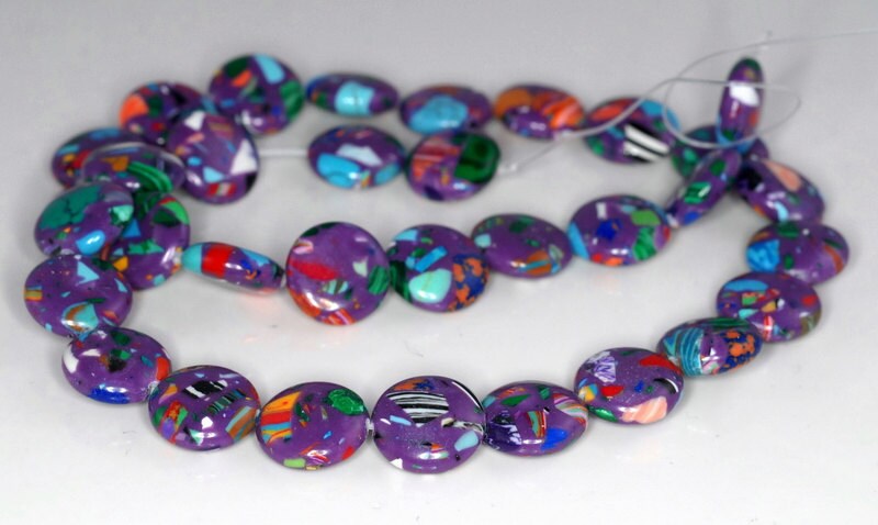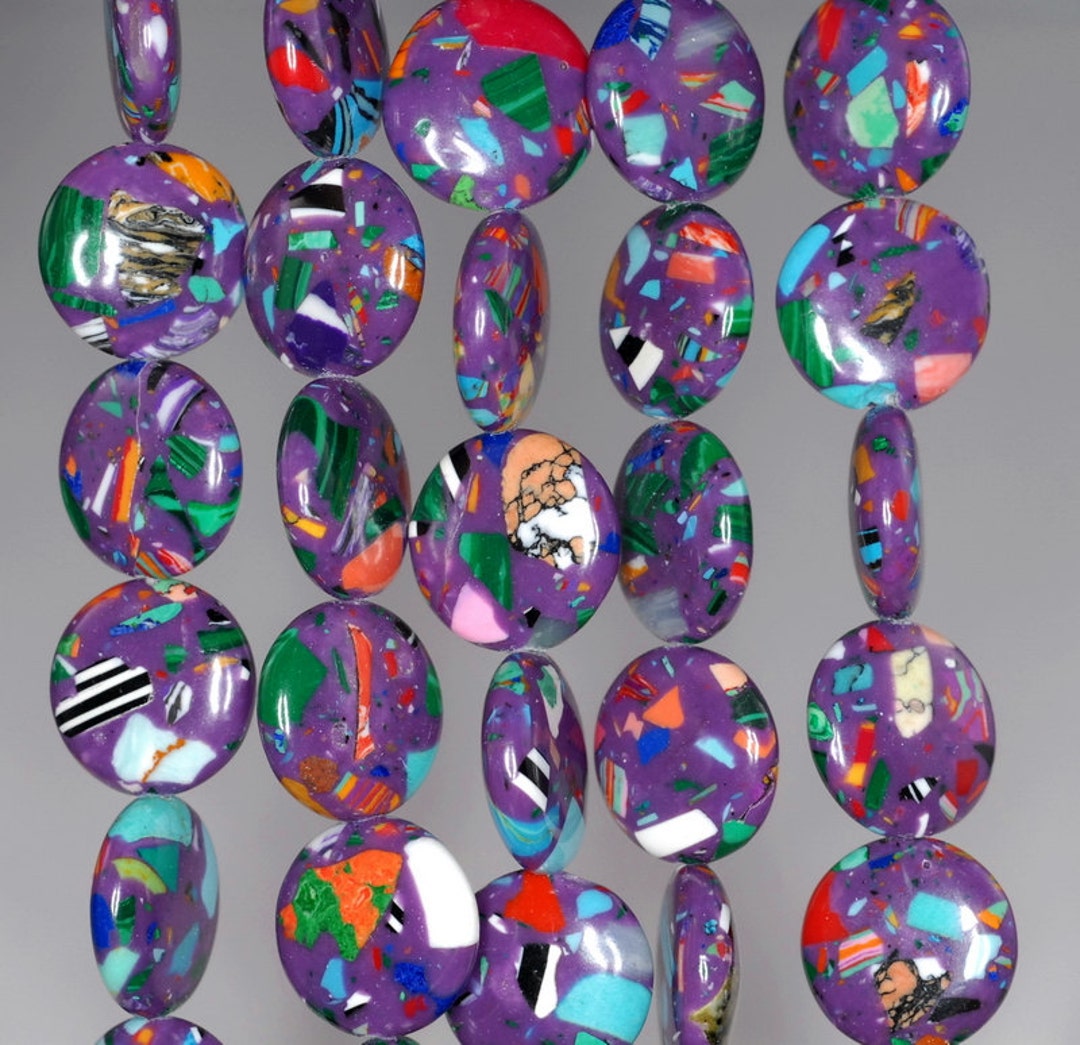 12mm Matrix Turquoise Gemstone Purple Mosaic Flat Round Circle - Etsy