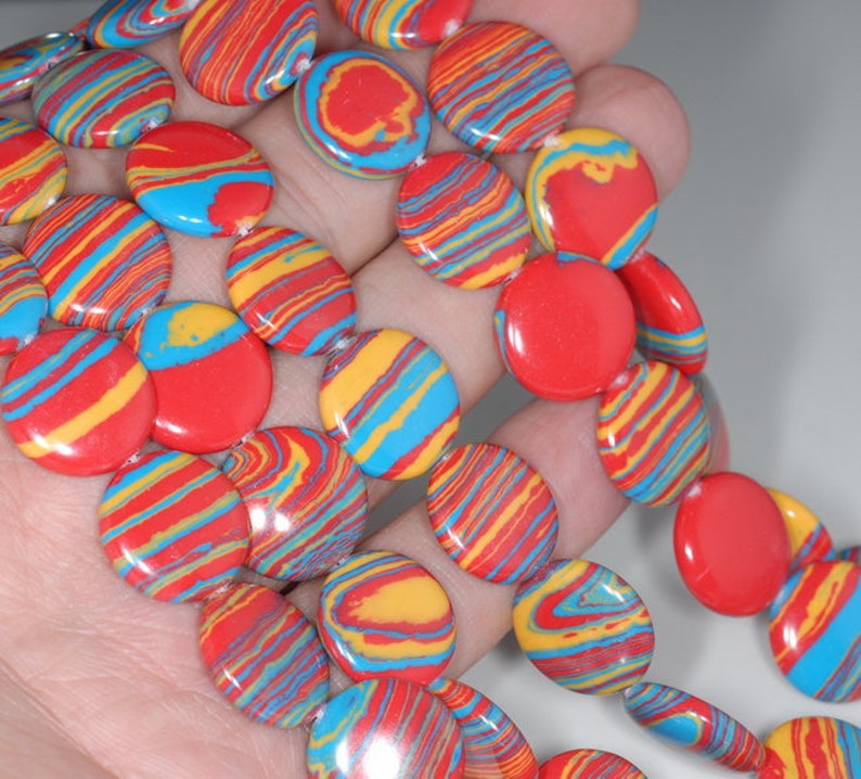 15MM Rainbow Matrix Turquoise Gemstone Flat Round Circle Loose Beads 15 ...