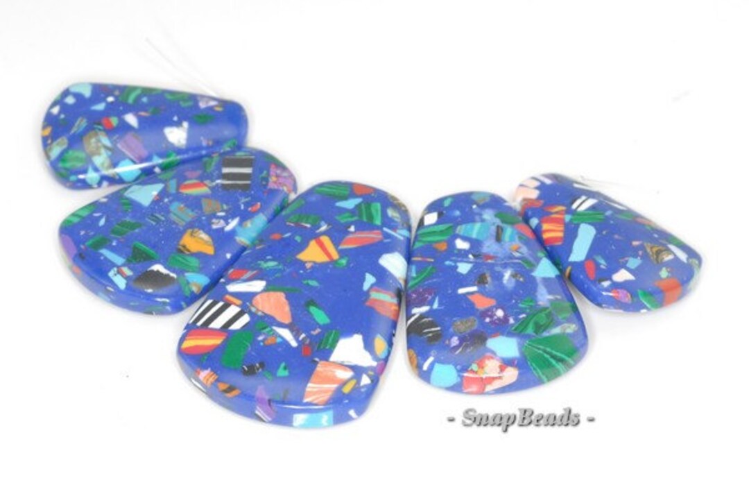 Matrix Turquoise Gemstone Mosaic Blue Loose Beads Gradated Set 5 Beads ...