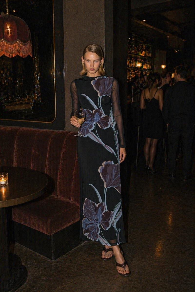 Staple The Label Stas Mesh Dress in Midnight Floral
