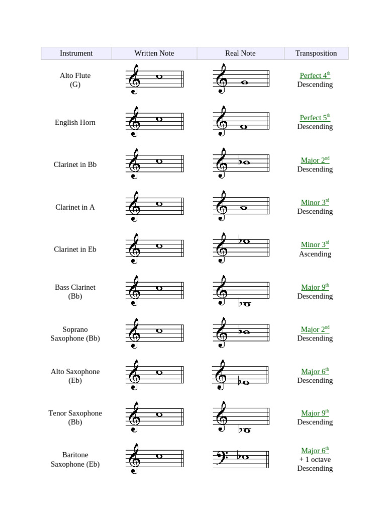 Transposition Instrument Chart | PDF