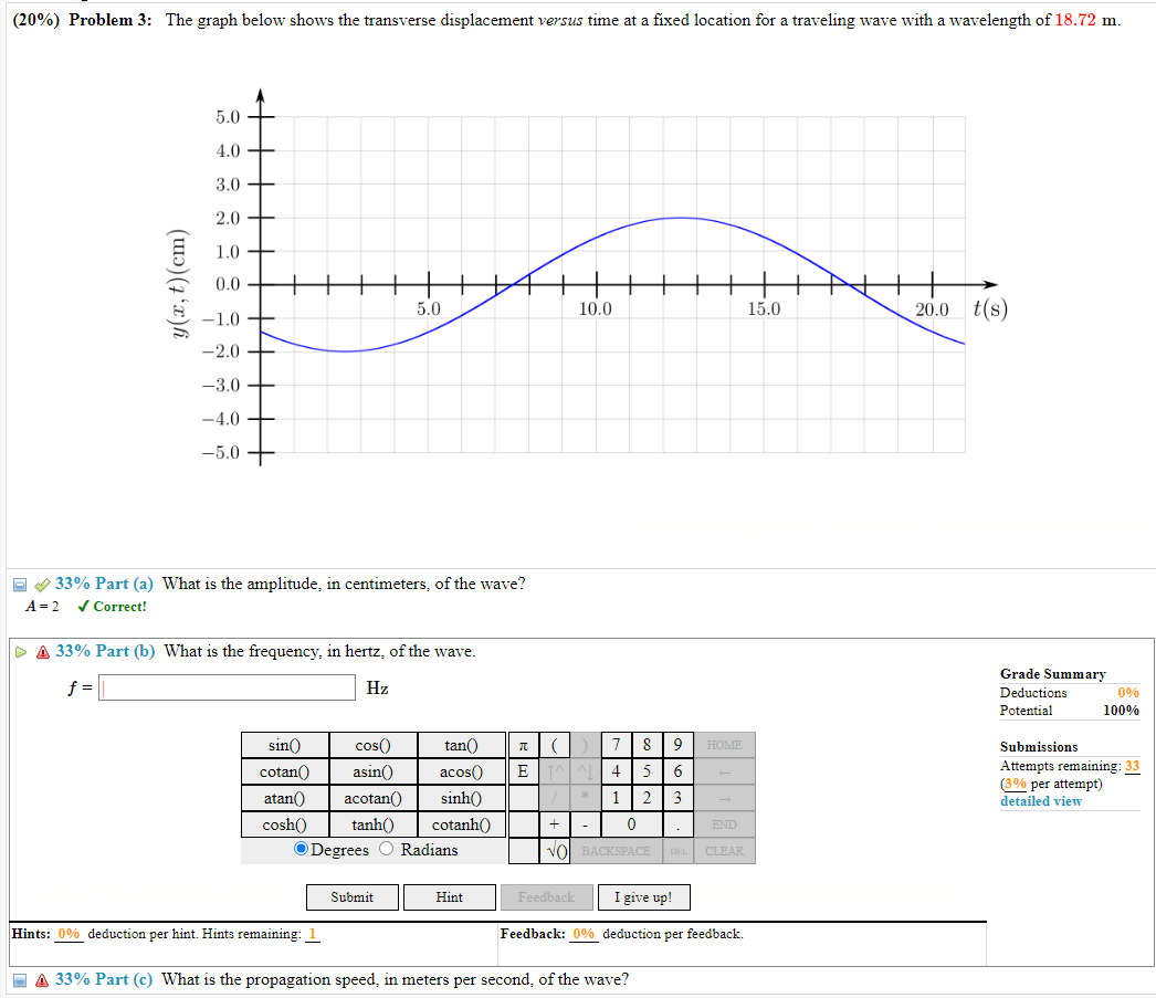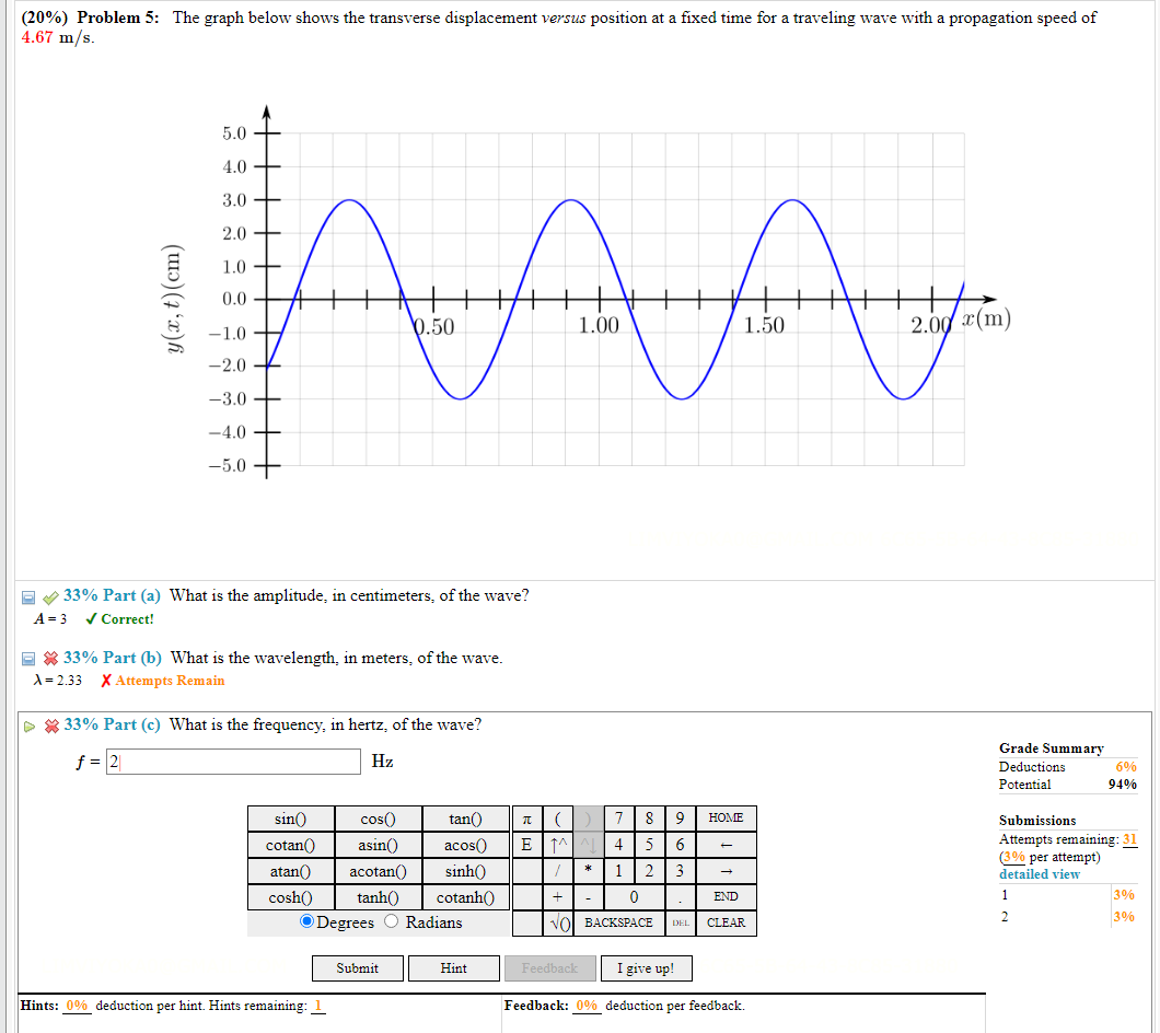 Solved (17%) Problem 1: The graph below shows the transverse | Chegg.com