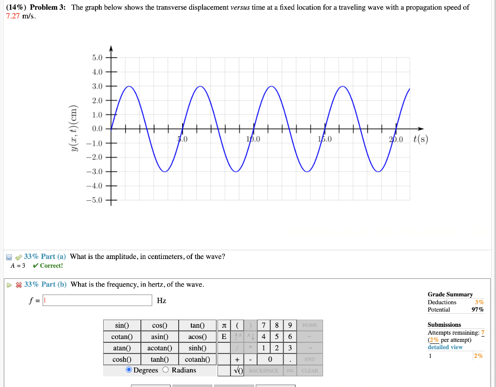 Solved (14%) Problem 3: The graph below shows the transverse | Chegg.com