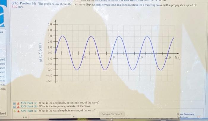 Solved (5%) Problem 9: The graph below shows the transverse | Chegg.com