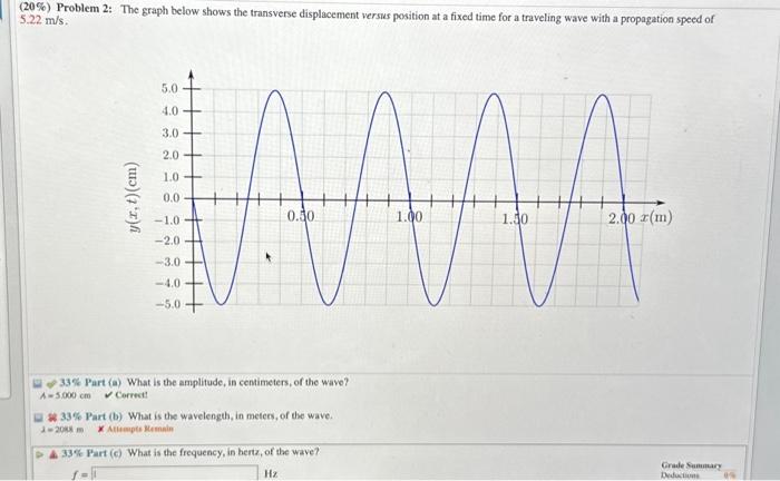 Solved (20%) Problem 2: The graph below shows the transverse | Chegg.com