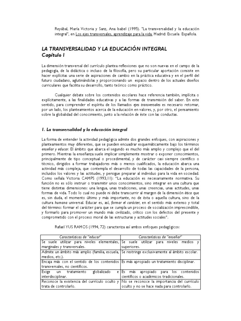 La Transversalidad y La Educación Integral | PDF | Plan de estudios ...