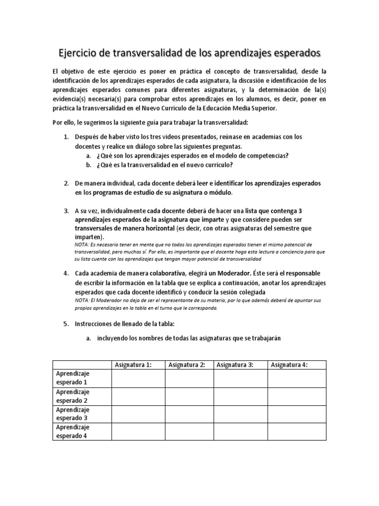 Guía para trabajar la transversalidad - Ejercicio 1 | PDF | Plan de ...