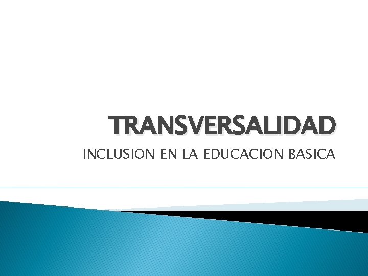 TRANSVERSALIDAD INCLUSION EN LA EDUCACION BASICA TRANSVERSALIDAD ES