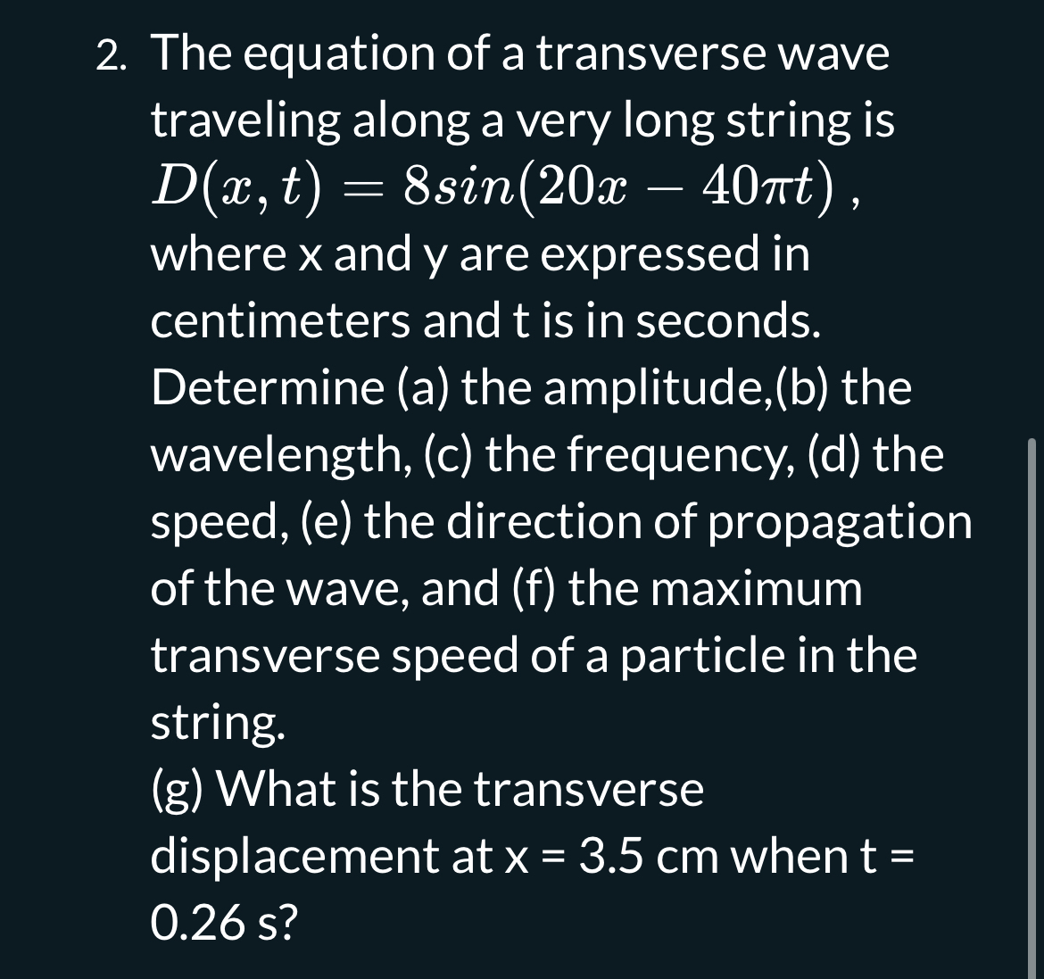 SOLVED: A transverse wave A is described by lhelequation; " (2, t) 0.15 ...