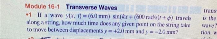 Solved Module 16-1 Transverse Waves -1 If a wave y(x,t)=(6.0 | Chegg.com