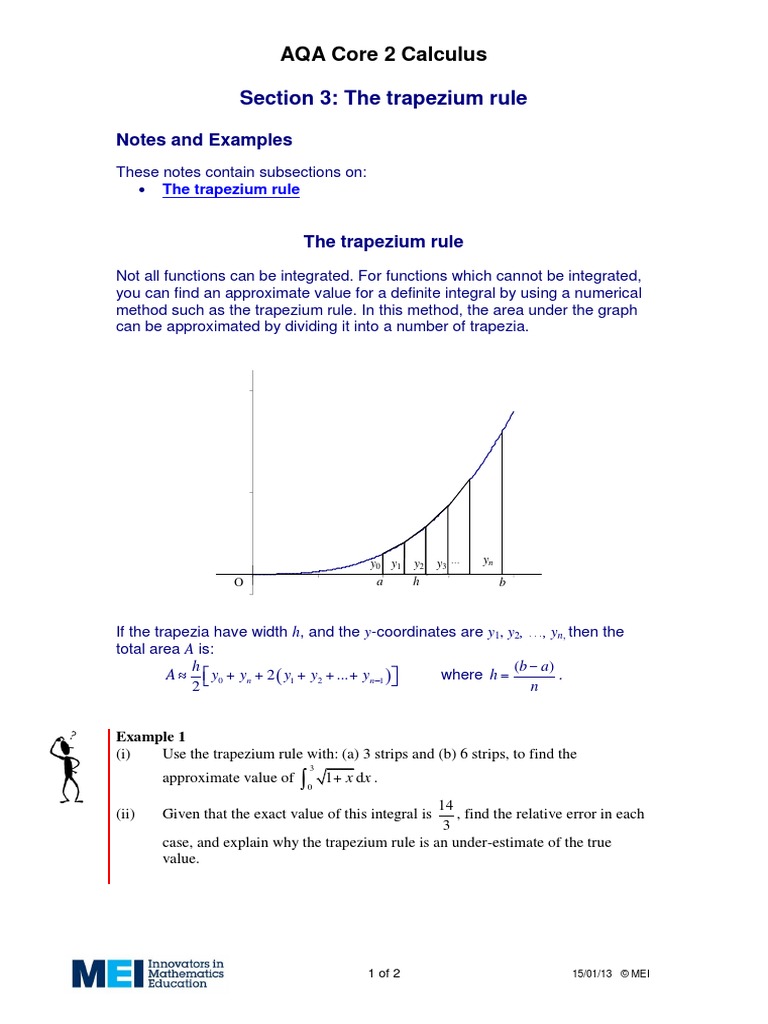 Trapezoidal Rule The Trapezium Rule – Mathematics A Level Revision