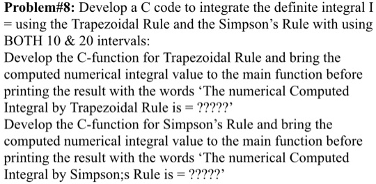 Problem#8: Develop a C code to integrate the definite integral I ...