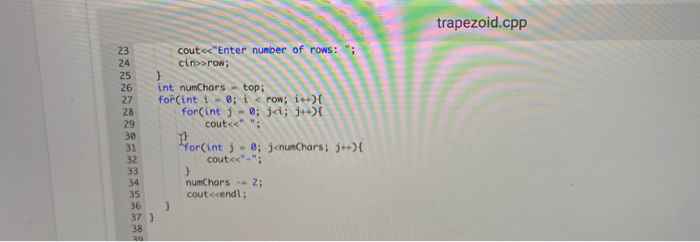 Solved I need help making this inverted trapezoid for C++ | Chegg.com