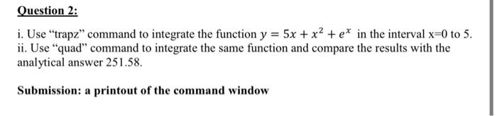 Solved Question 2: i. Use "trapz" command to integrate the | Chegg.com