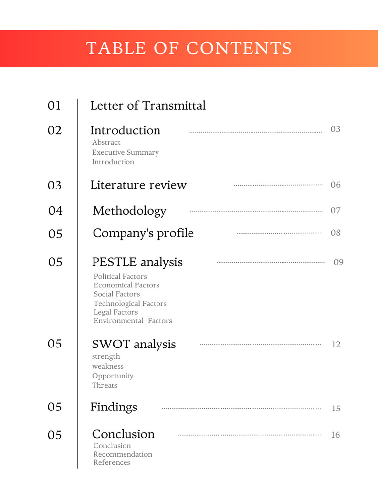 Business Plan Table of Contents Template in Word - Download | Template.net