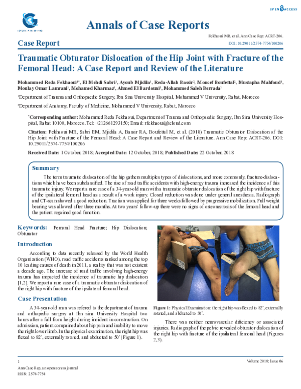 (PDF) Traumatic Obturator Dislocation of the Hip Joint with Fracture of ...