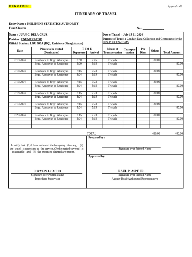 Itinerary of Travel SAMPLE For en Sample Only | PDF