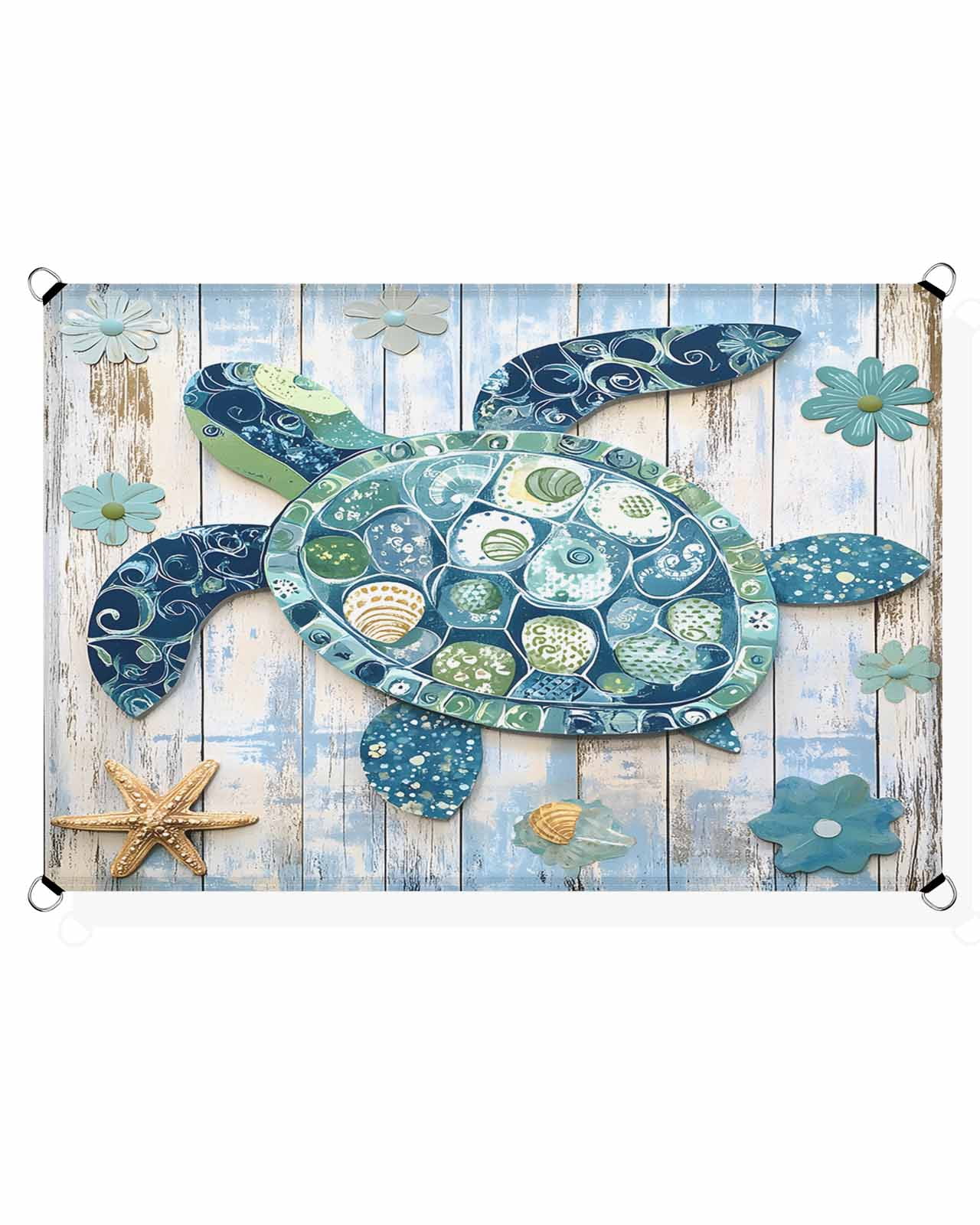 Boho Blue Sea Turtle Sun Shade Sail 14'X18' Floral Wood Grain UV Block ...