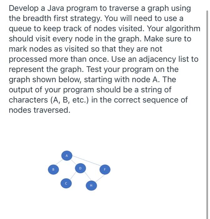 Solved Write a program traverse graph(BFS) in java: | Chegg.com