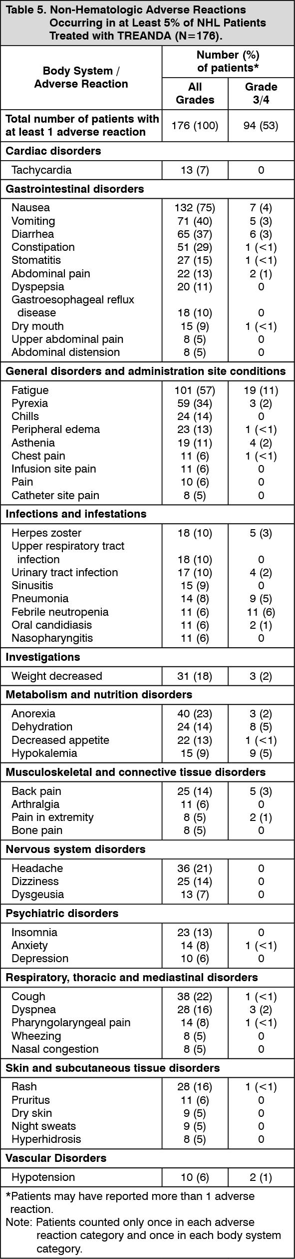 Treanda Adverse Reactions | MIMS Hong Kong