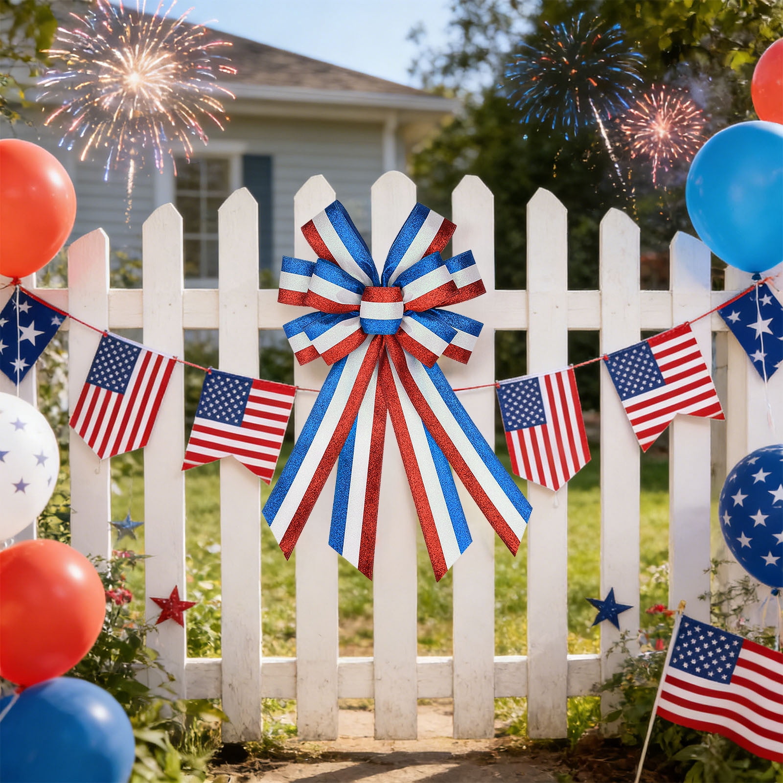 4th of July Bow Decorations with Wire Edges, Patriotic Independence Day ...