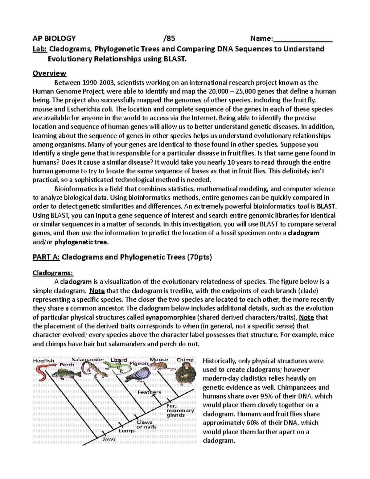 AP BIOLOGY Lab: Cladograms, Phylogenetic Trees & DNA Sequence Analysis ...