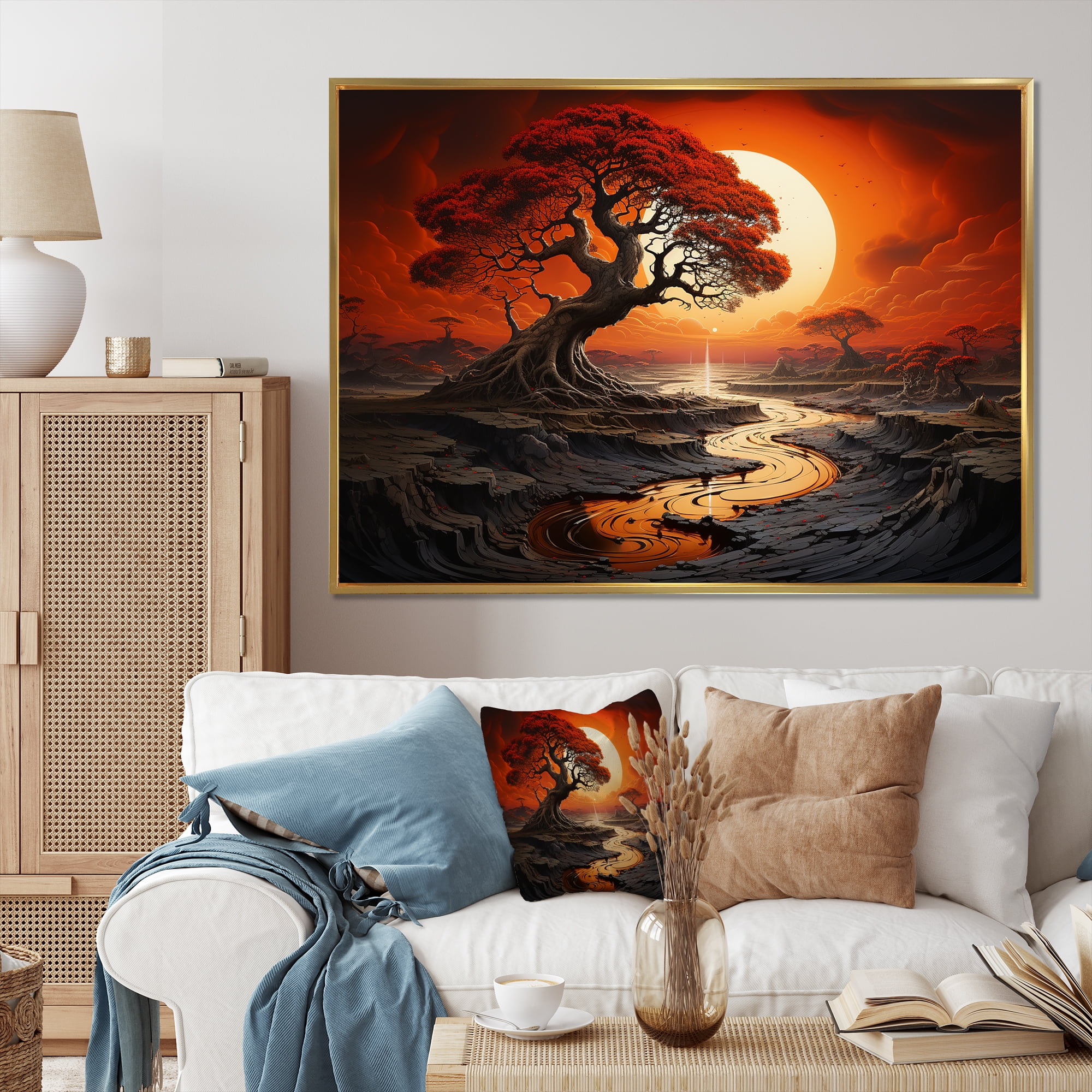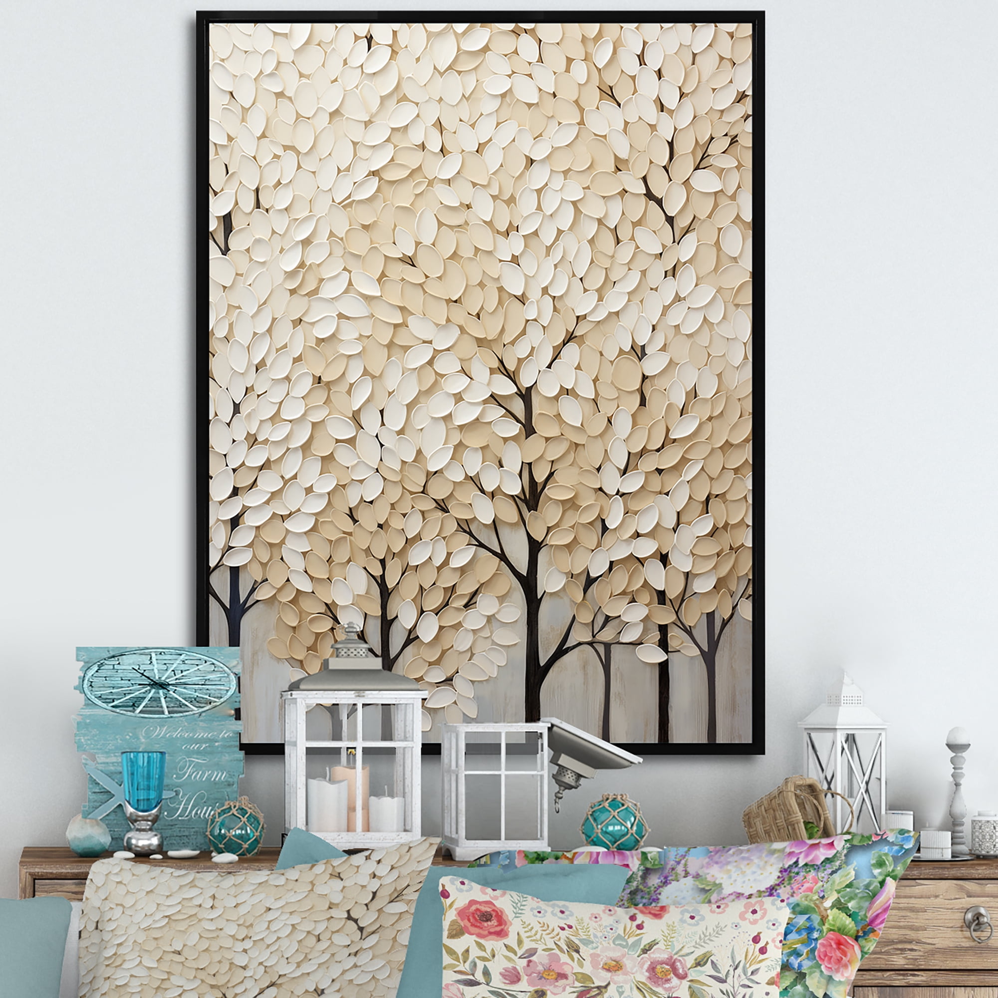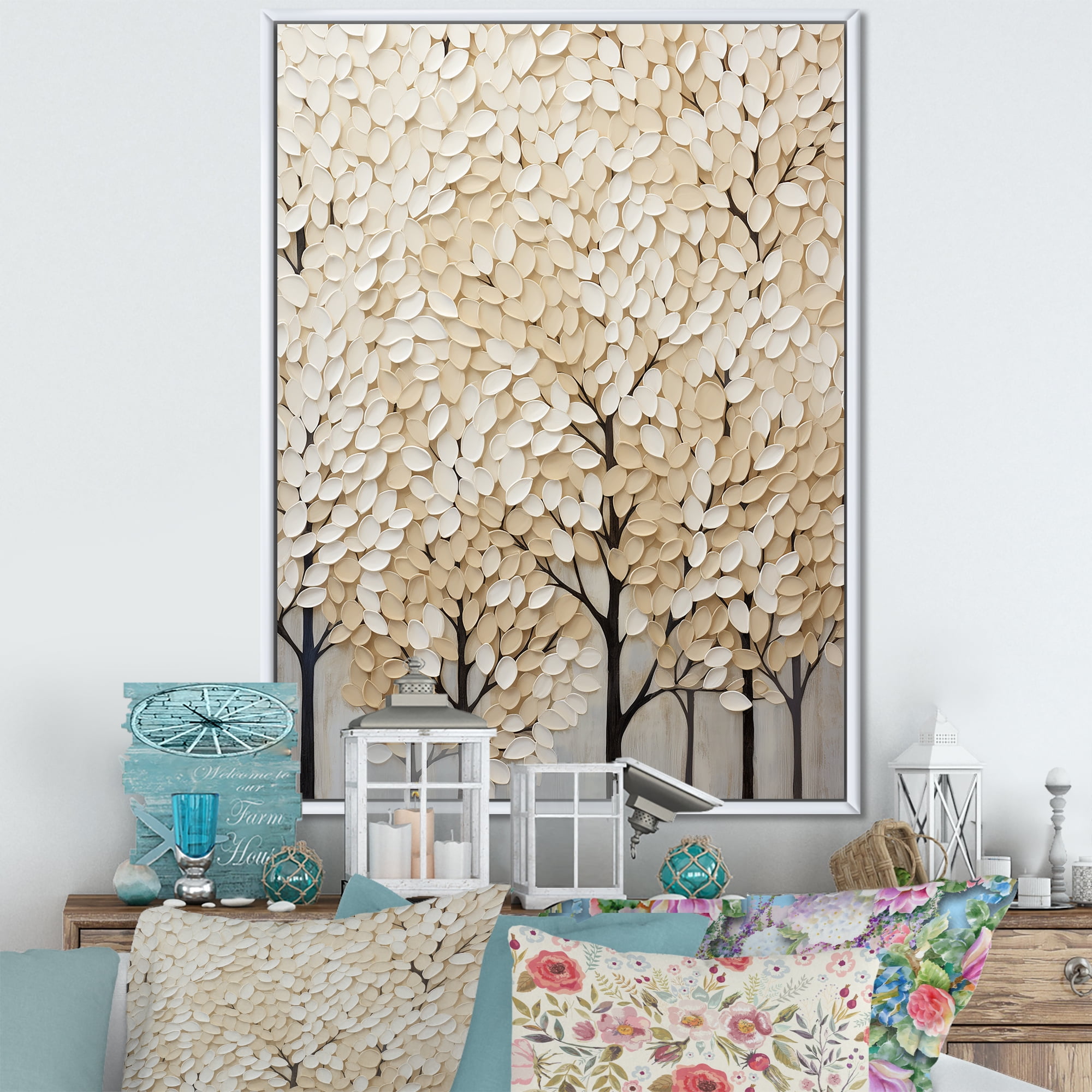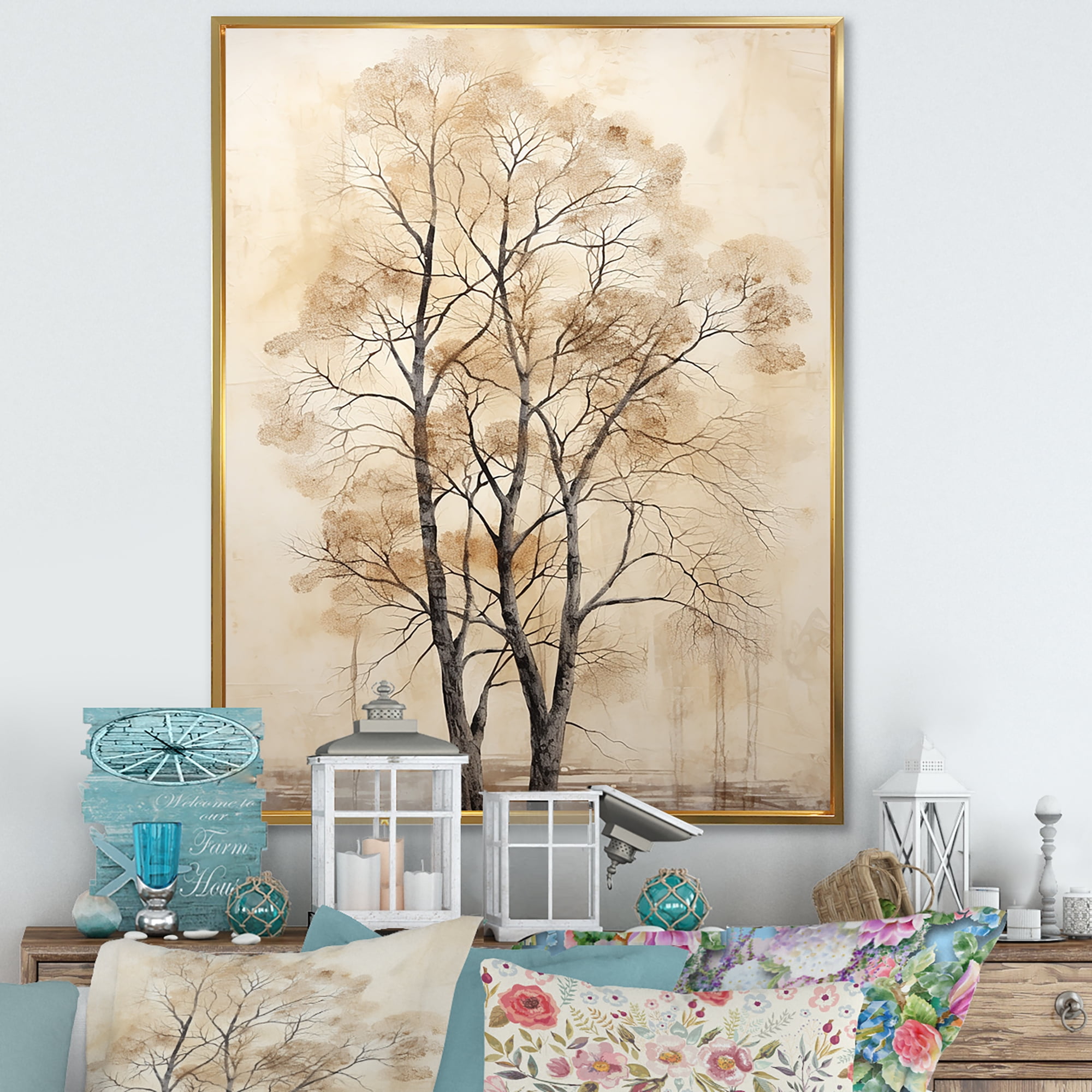 Designart "Artwork Featuring A Harmonious Beige Tree VI" Landscape ...