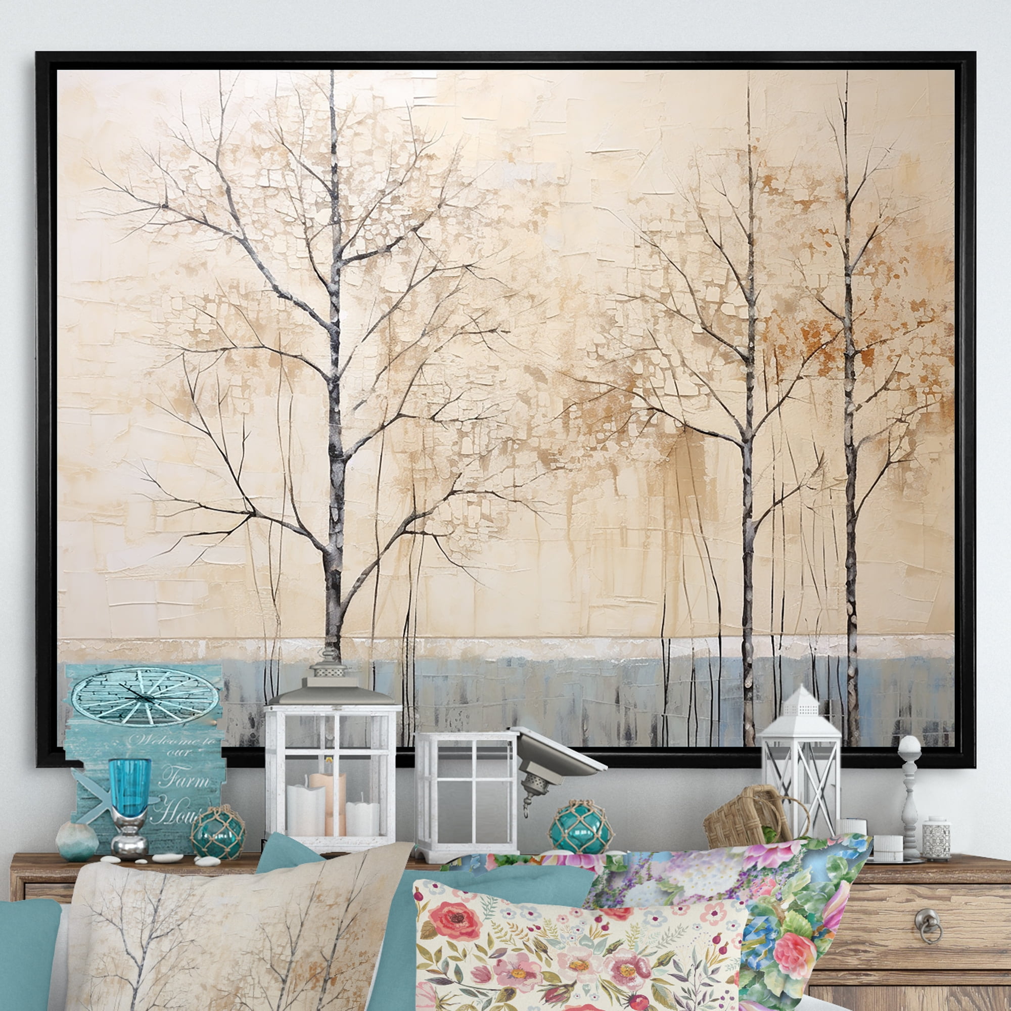 Designart "Artwork Featuring A Harmonious Beige Tree I" Landscape Trees ...