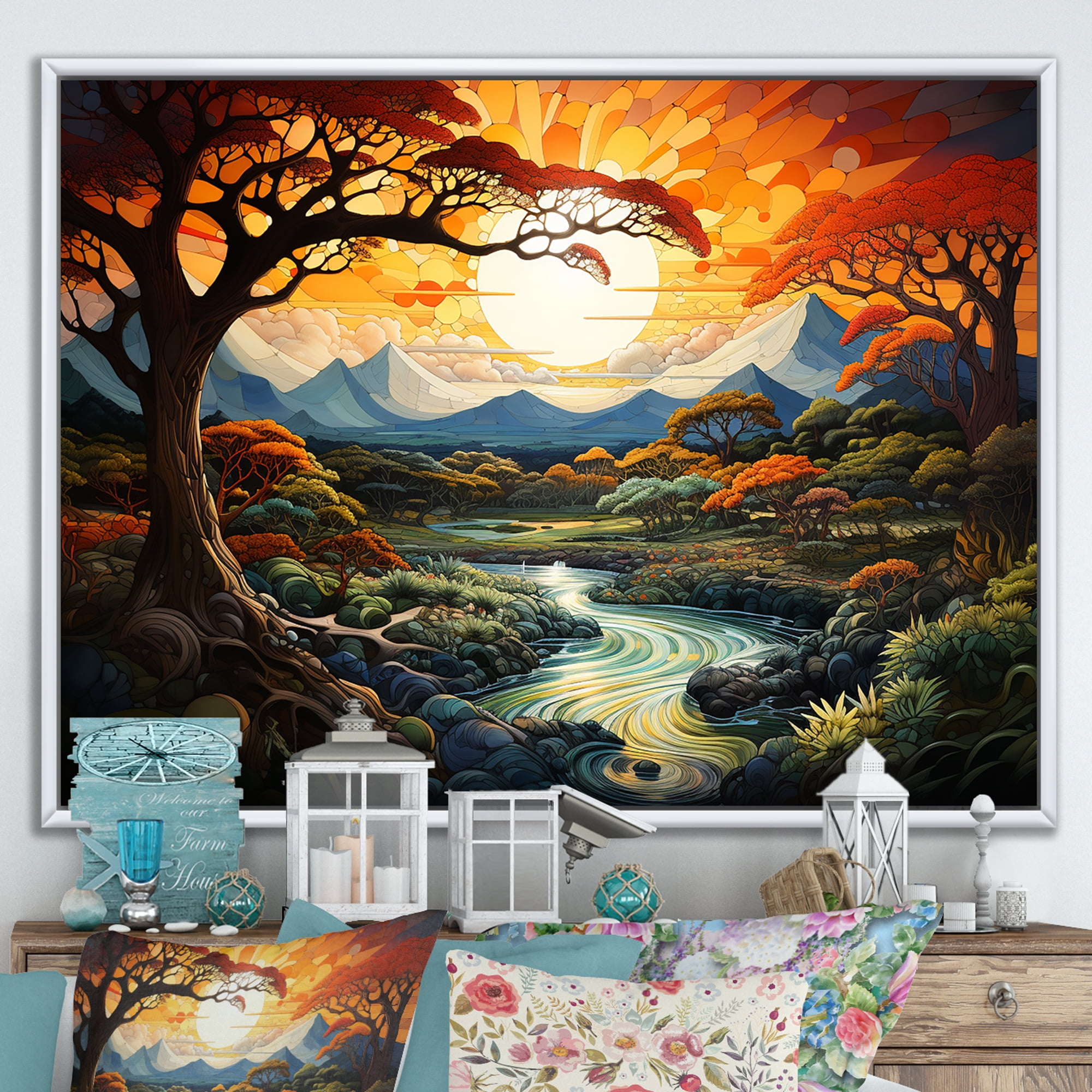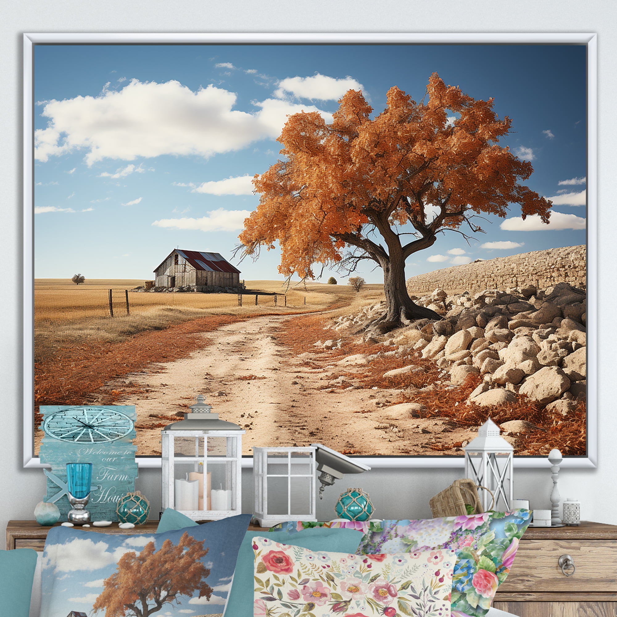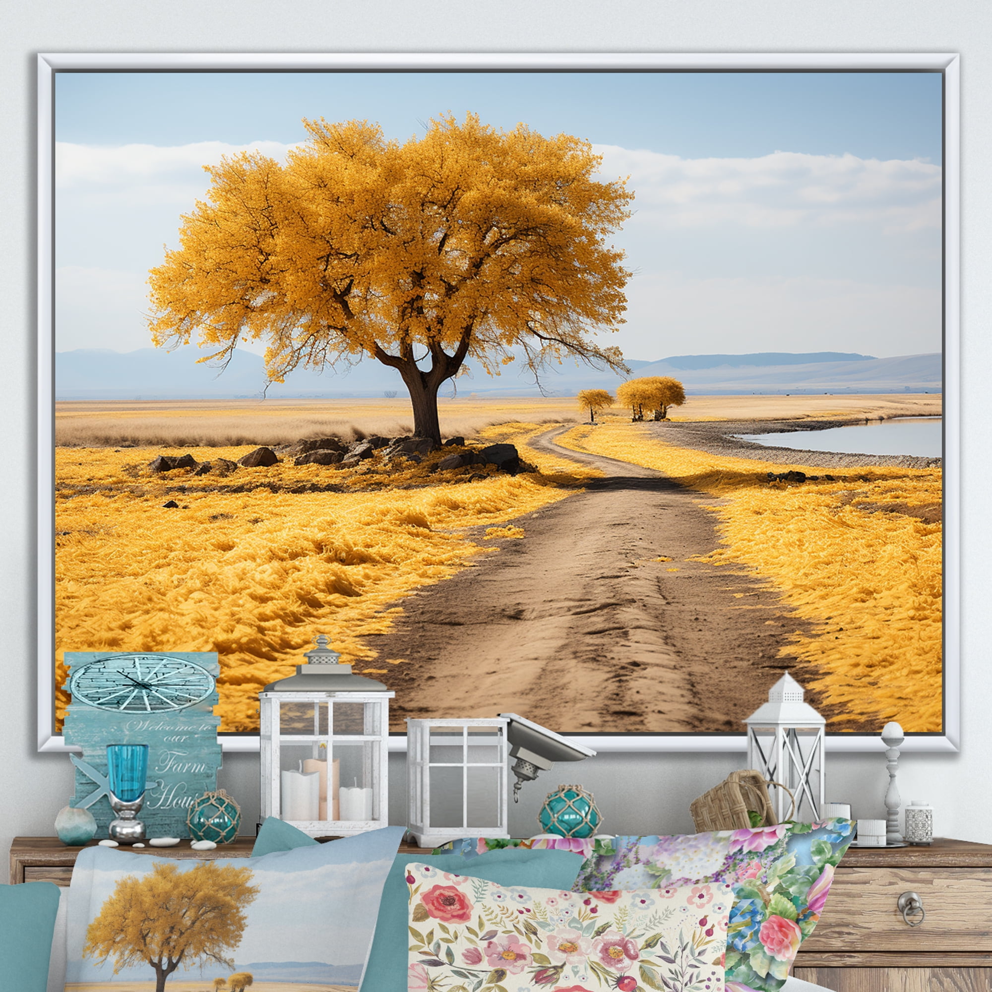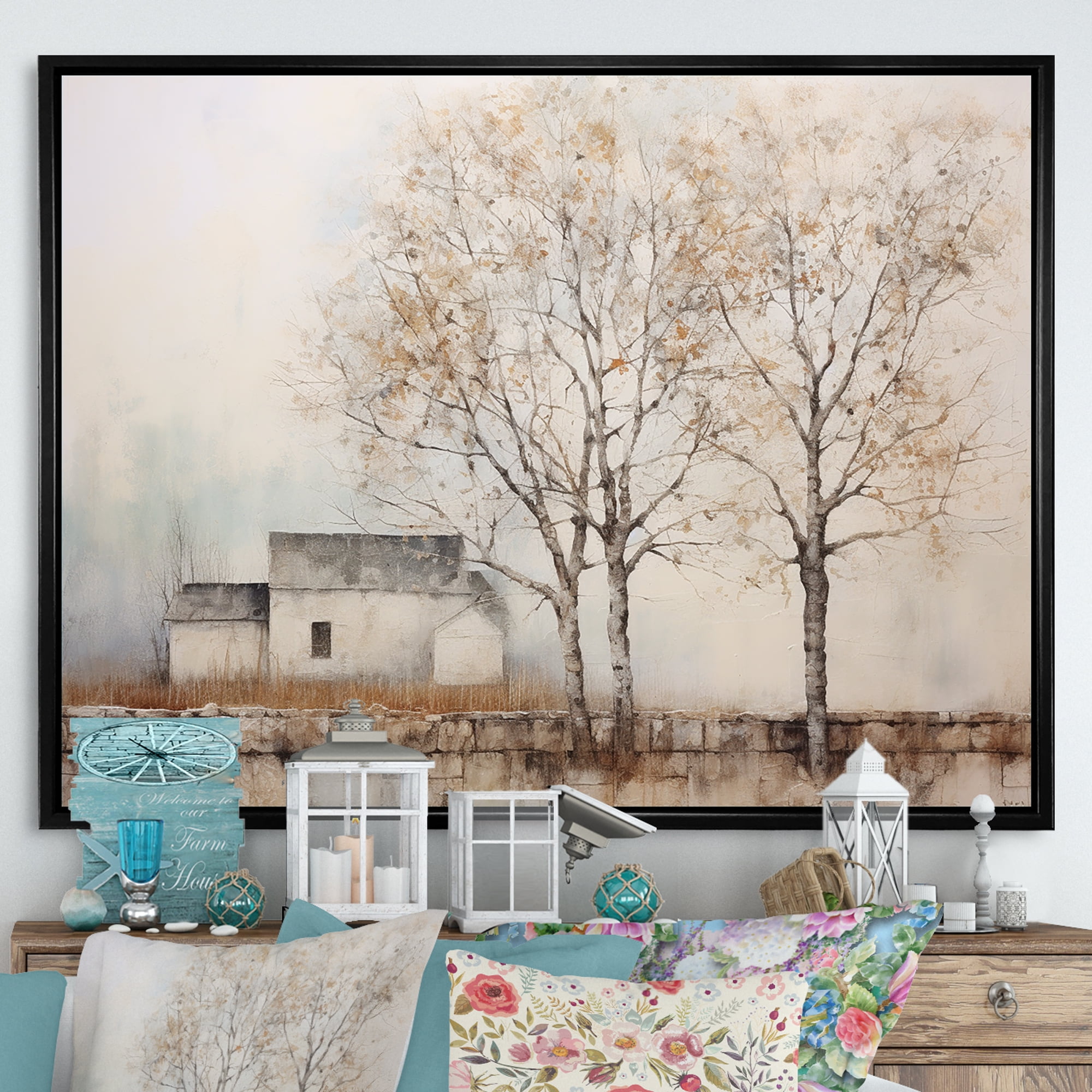 Designart "Rustic Farmhouse Tree Scenery" Landscape Trees Floater ...