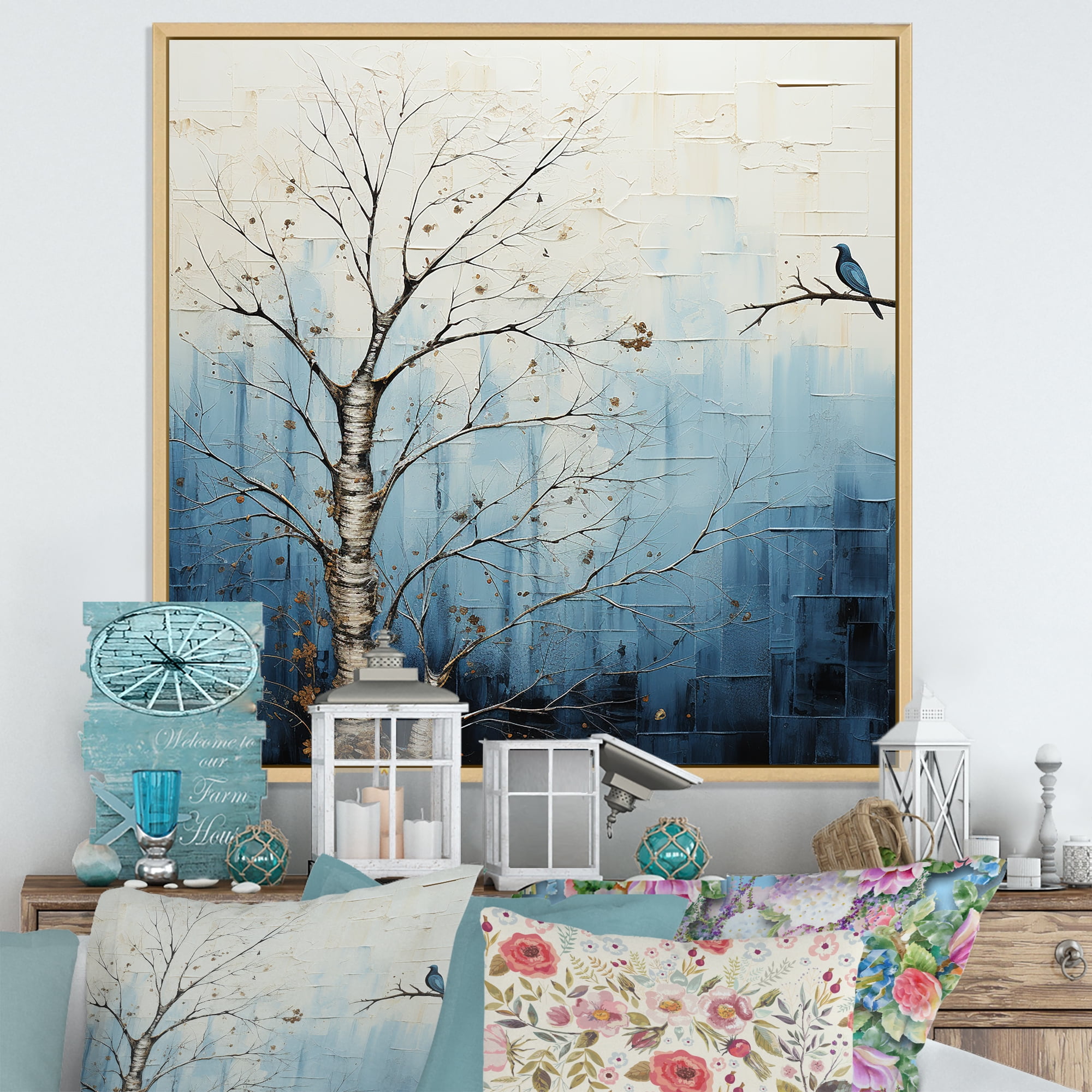 Designart "Charming Blue Tree Elegance III" Landscape Trees Floater ...